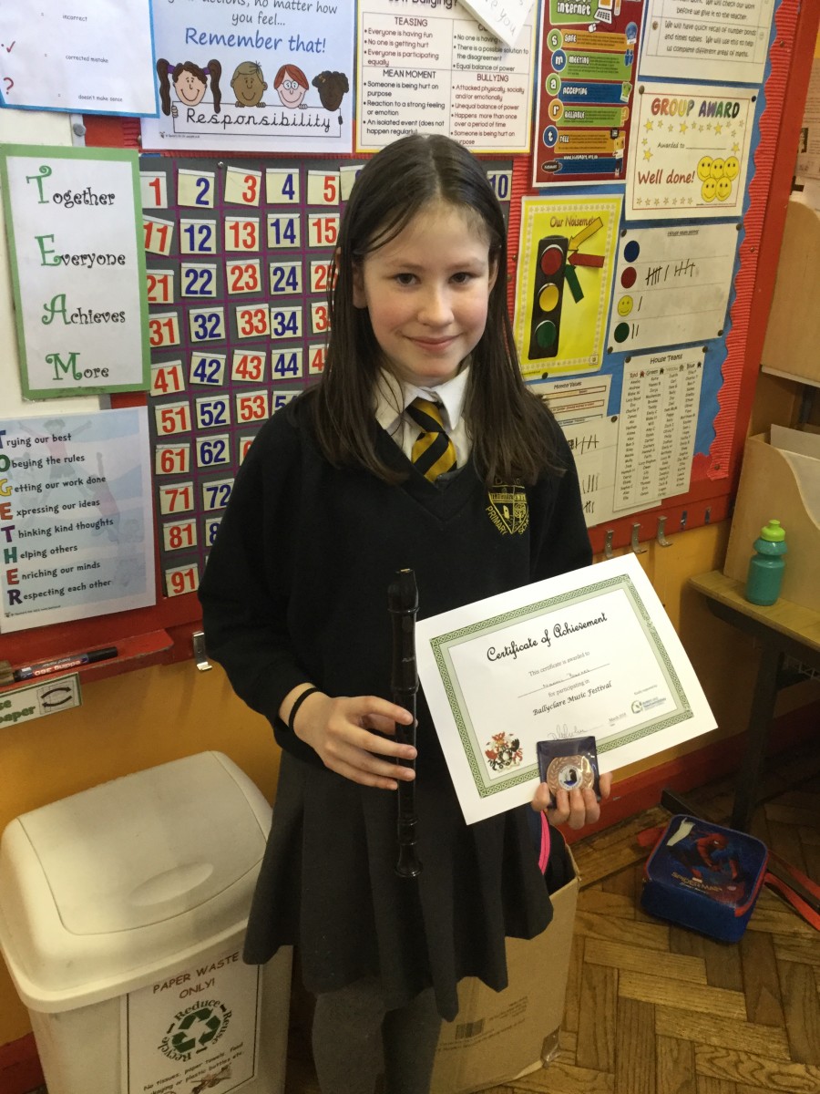 Well done to Eva -P6 and Naomi -P7 on taking part in the Recorder class at Ballyclare Music Festival this week.
