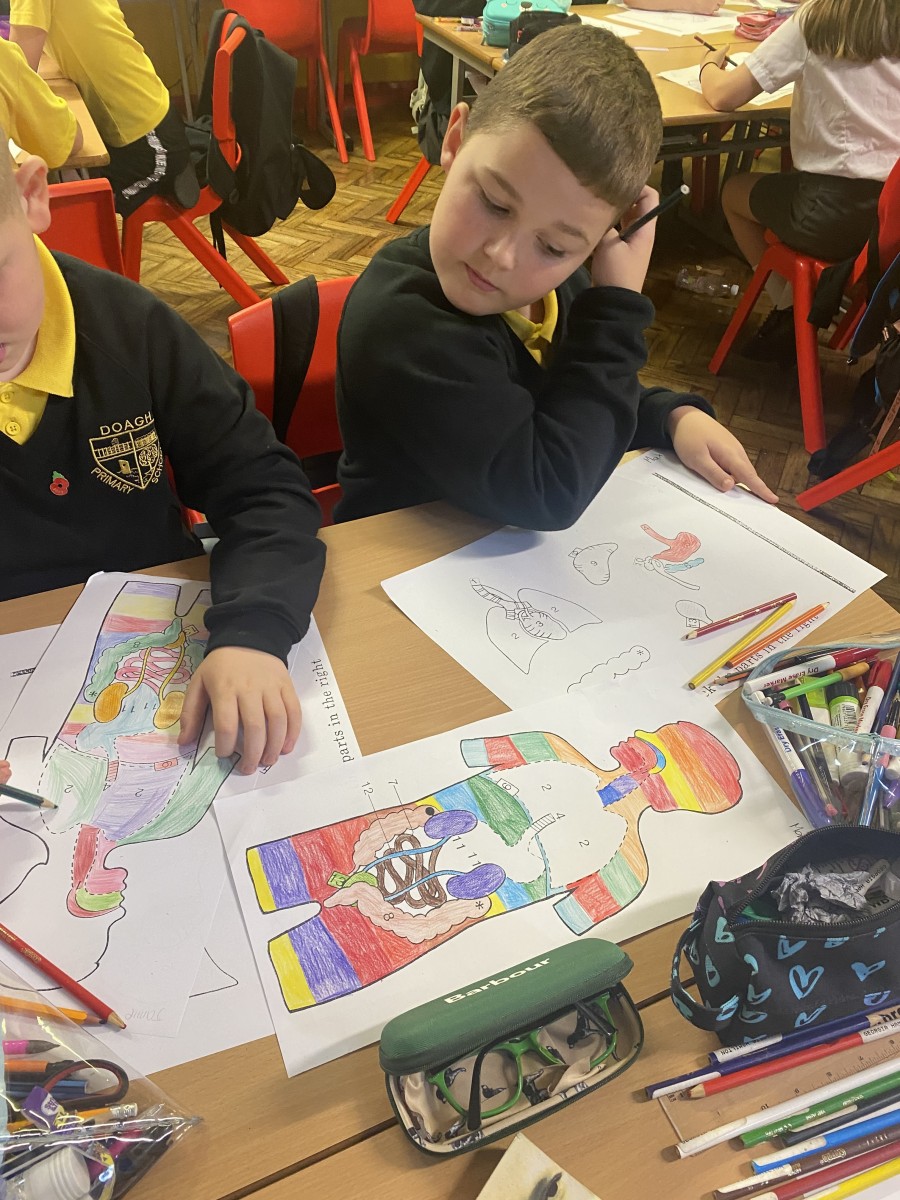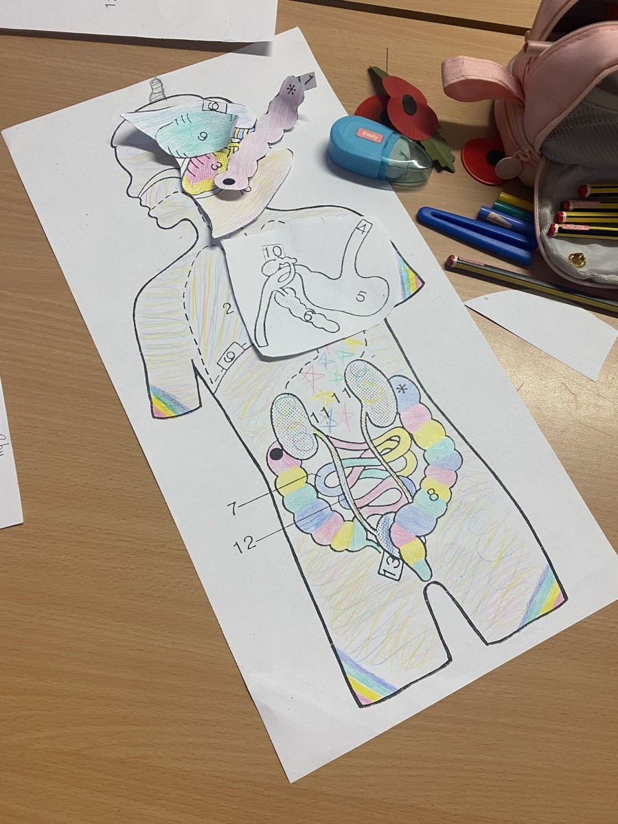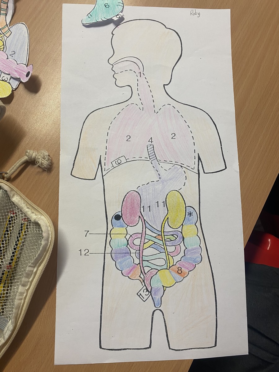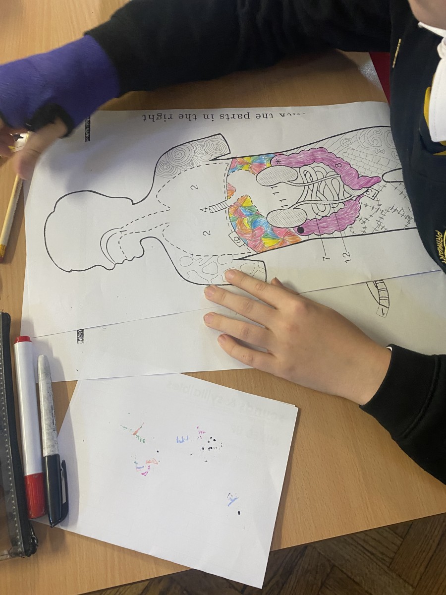 We have been learning about our digesive system. We had to put our organs in the correct place on our bodies. It took lots of concentration.