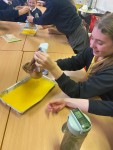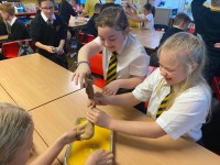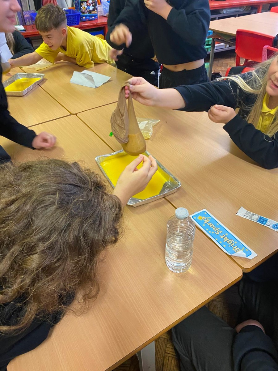 We have been learning about our digestive system and about how our food is broken down by our bodies. We learned how the small intestine uses all the good stuff from our food and gets rid of the waste. Our experiment was fun, messy and stomach churning!